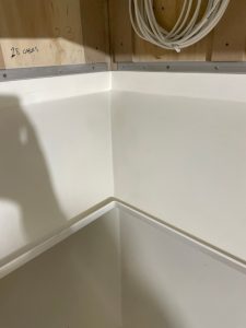 As part of this project, our team were asked to fill in multiple welded joints to bring the components back together and create one structure. Commercial spraying was then used to recoat the metalwork. We used the advanced HVLP spraying method to respray the surface in the shade 901 white in a 2K finish, which was specified by our client. This allowed us to restore the metalwork to its original condition, ready for the store to use the structure to showcase their state-of-the-art shoes.